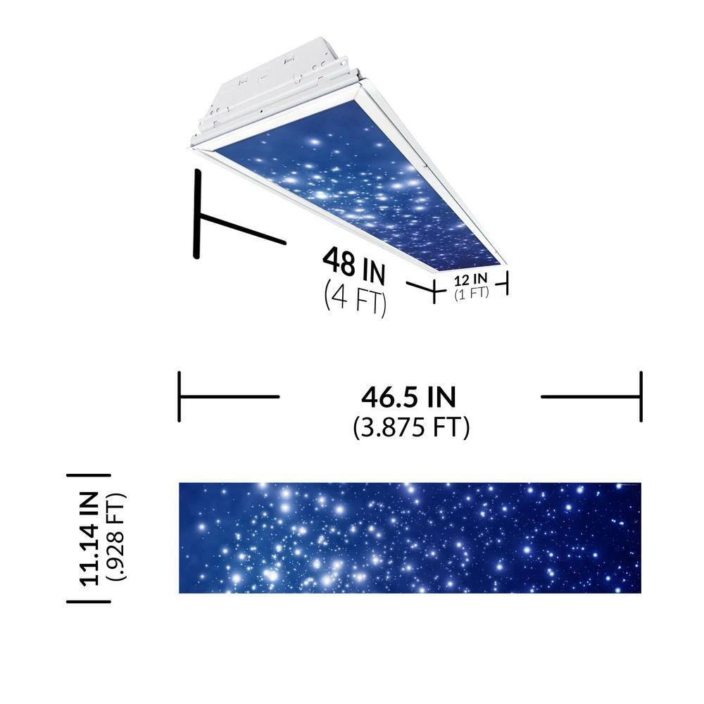 • ?UNIVERSAL 1×4 FIT? Octo Lights’ decorative astronomy light covers seamlessly fit any standard 1×4 fluorescent ceiling diffuser. The actual size of each panel measures, 11.187″ x 46.5″
