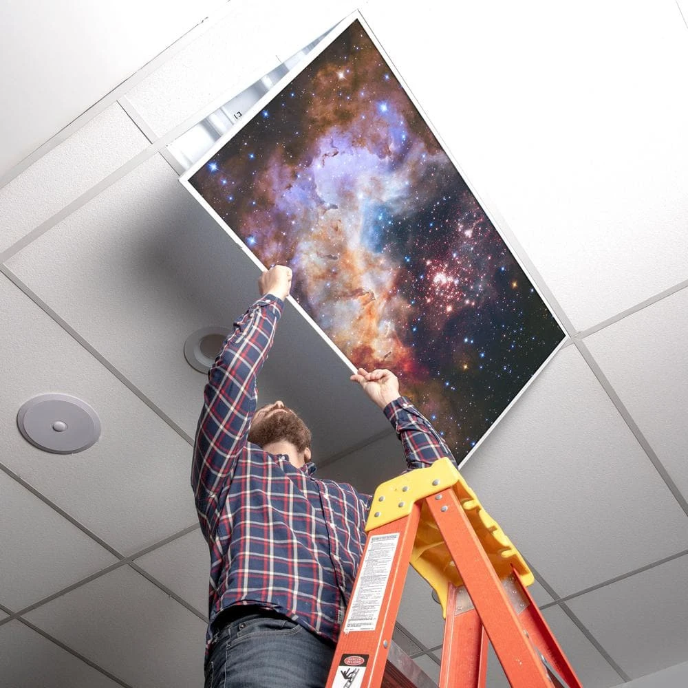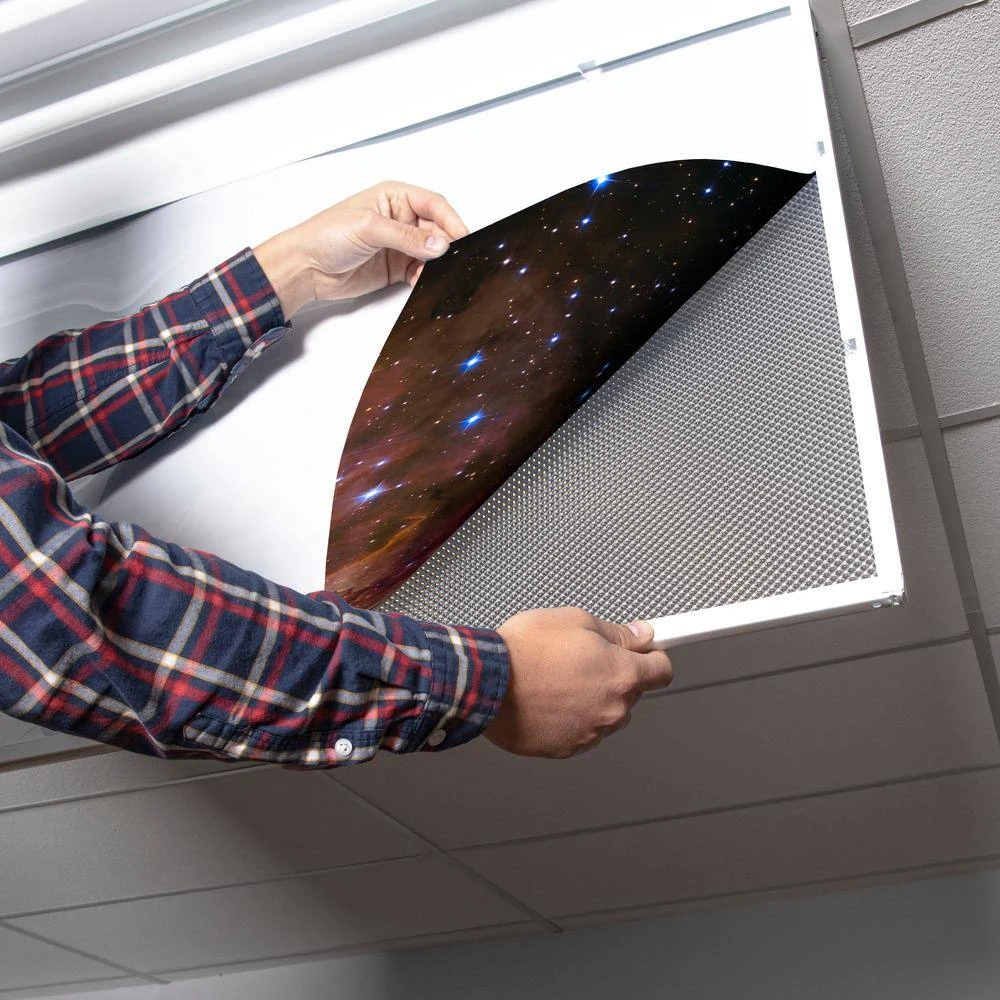 OCTO LIGHTS- Fluorescent Light Covers: Reduce harsh fluorescent glares and escape the indoors without leaving your desk or cubicle. Whether at home, in school or at the office, liven up any fluorescent lighting system with the OCTO LIGHTS’ astronomy design light filters to make every day feel like you’re stargazing or sojourning through the stars. Made with top quality materials and featuring high-resolution photo prints the OCTO LIGHTS astronomy light covers are designed to enhance any space you choose to install. By removing the harsh glares from the fluorescent lights, your living and workspace will be transformed into 1 of other-worldly serenity. OCTO LIGHTS Features and Benefits: Lightweight and Flexible, Eco-Friendly, Self-Extinguishing Material, Easy Installation and Exchange, UL Certified, Safe for All Environments, Available in Backlit Film for Traditional Fluorescent Lighting Systems. Perfect For: Homes, Classrooms, Offices, Workshops, Hospitals and More. About OCTO LIGHTS: As leaders of the lighting industry, we take pride in offering high quality astronomy fluorescent light covers that are easy on the pocket. Our experts use high-resolution images to develop flawless interstellar ceiling tiles. You can rest assured that you’ll be paying for top-notch light products in the market.