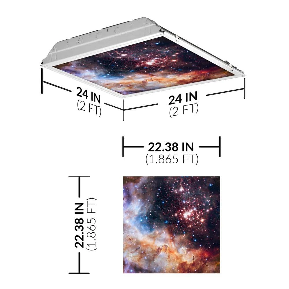 • ?UNIVERSAL 2×2 FIT? Octo Lights’ decorative astronomy light covers seamlessly fit any standard 2×2 fluorescent ceiling diffuser. The actual size of each panel measures, 22.38″ x 22.38″