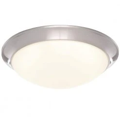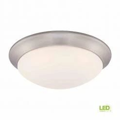 The Commercial Electric Brushed Nickel Finish 11 in. LED Flushmount with frosted white glass is designed to look great in any room while save you money at the same time. This dimmable, 11 in. round ceiling mounted light features a brushed nickel finish and sleek white glass diffuser. The integrated LED light source reduces energy consumption by 70%. Because there are no bulbs to replace, it saves you time and money.