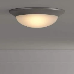 The Commercial Electric Brushed Nickel Finish 11 in. LED Flushmount with frosted white glass is designed to look great in any room while save you money at the same time. This dimmable, 12 in. round ceiling mounted light features a brushed nickel finish and sleek white glass diffuser. The integrated LED light source reduces energy consumption by 70 percent. Because there are no bulbs to replace, it saves you time and money.