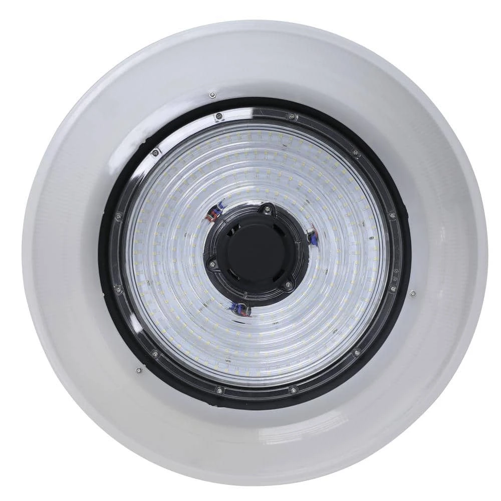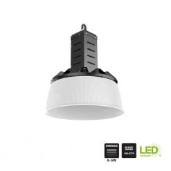 The Commercial Electric High Lumen Round LED High Bay offers superior uniform LED lighting for a variety of applications such as warehouses, manufacturing spaces, commercial spaces and gymnasiums. The compact design with single point mounting allows for easy installation and replacement of traditional HID lighting. With a reduction in energy consumption to 285-Watt LED – comparable to 750-Watt traditional fixture- these LED high bay lights deliver considerable energy savings. Durable aluminum housing and LEDs rated for dust and water proof protection can withstand different environments. The performance and reliability of the CE High Lumen Round High Bay provides the solution for your industrial lighting needs. 5-year warranty.