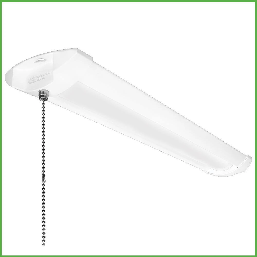 Commercial Electric 2 ft. LED Strip Light with Pull Chain is designed to replace any outdated fluorescent light with a crystal clear and energy-efficient integrated LED fixture. Ease This reduces energy consumption by as much as 79% compared to conventional lighting units and replaces 100-Watt bulb. Use the 20 in. on/off pull chain for easy activation. This fixture is maintenance free with no bulbs to replace for up to 50,000-hours. Ideal for closet, utility room, laundry room, stairway, hallway, basement, storage room, work bench or garage.
