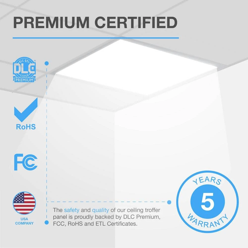An energy-efficient way to boost productivity in any space, this set of 12 2 ft. x 2 ft. backlit panels delivers 3825 Lumens of 4000K bright white light each, using 30-Watt LEDs. The PMMA anti-yellowing lenses ensure a no-glare, clean light that can be dimmed according to your needs. The fixtures’ color rendering index (CRI) of 80 ensures visual tasks are never sacrificed for the sake of energy savings. Simply install the lightweight panels in a recessed T-bar grid ceiling or using optional surface or suspension mount cable kits and start saving on your utility bills for 50,000 hours of operation, well beyond Commercial Electric’s 5-year warranty.