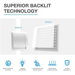 An energy-efficient way to boost productivity while reducing eye strain, this 2 ft. x 2 ft. backlit panel delivers 3750 Lumens of 3500K warm white light using a 30-Watt LED. The fixture’s color rendering index (CRI) of 80 ensures visual tasks are never sacrificed for the sake of energy savings. Simply install the slim, lightweight panel in a recessed T-bar grid ceiling or using optional surface or suspension mount cable kits. The integrated LED uses less energy than a standard bulb, saving utility costs for 50,000 hours of operation, well beyond Commercial Electric’s 5-year warranty.