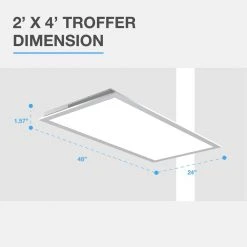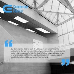 This energy-efficient 2 ft. x 4 ft. Backlit LED panel troffer is ideal for any location, emitting 6375 lumens of 4000K bright white light using only 50 watts. This fixture features an emergency driver that provides 90 minutes of illumination with 1530 lumens when AC power is removed. The PMMA anti-yellowing lens ensures a no-glare, even distribution of light at 120° that can be dimmed according to your needs. Installation is easy – simply secure the lightweight panel in a recessed T-bar grid ceiling using integral earthquake clips. The fixture qualifies for energy rebates and will reduce your utility bills for 50,000 hours of operation, well beyond Commercial Electric’s 5-year warranty.