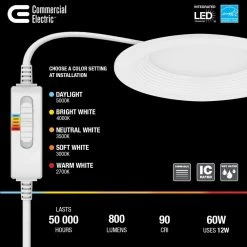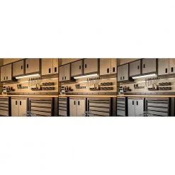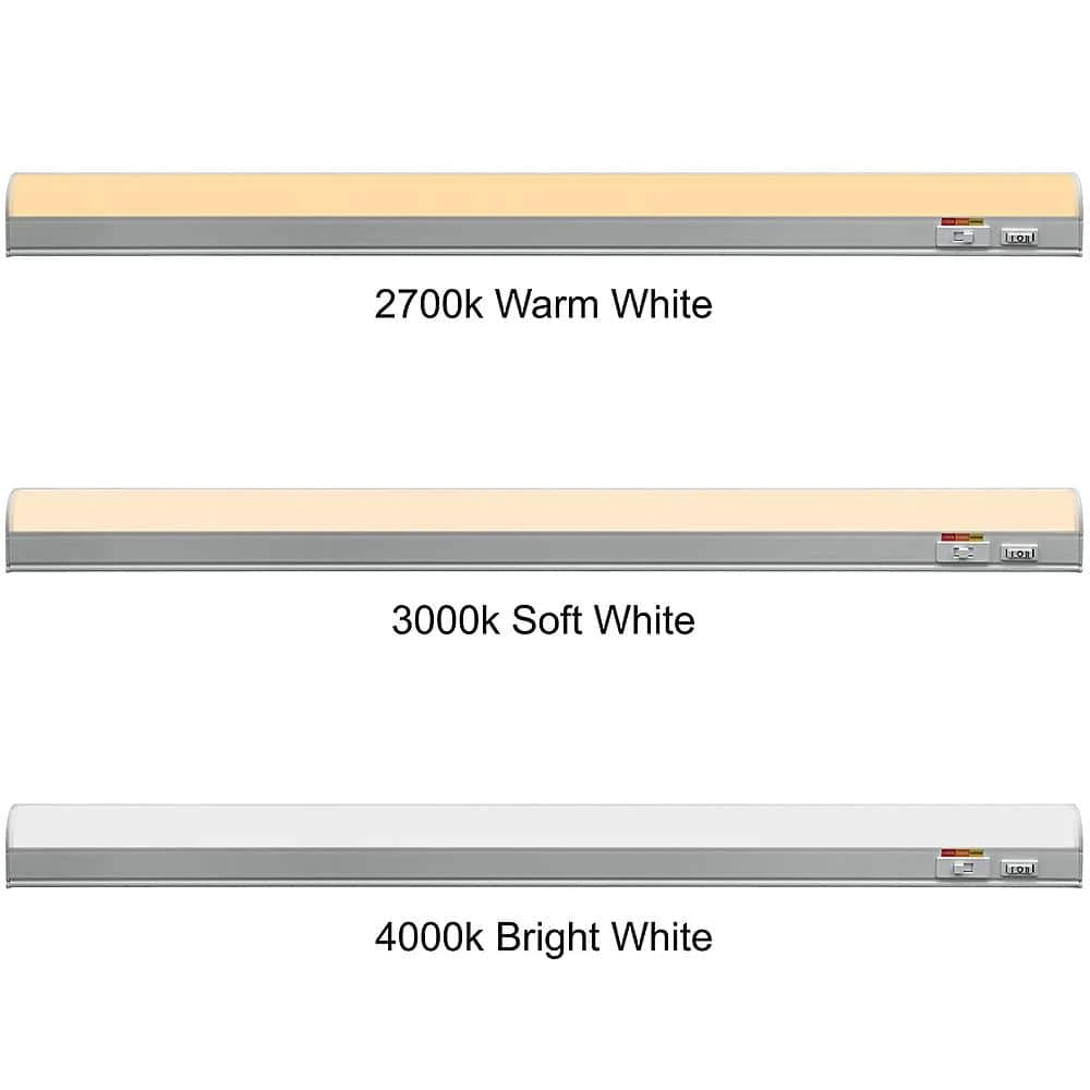 Commercial Electric 24in. Plug-in Color Changing 3-Position Switch LED Under Cabinet Light is designed to replace over-heated under cabinet incandescent, puck and xenon lights with a crystal-clear energy-efficient LED fixture. What is unique about this fixture is that you customize the lights depending on your needs. Choose color of light output between Warm White, Soft White or Bright White and use the 3-position step-dimmer for Low or High illumination; change back and forth at any time. This fixture is perfect for 30in cabinet widths and is linkable up to 18 units; cables, cords and hardware included. With a lifespan of up to 50,000 hours, our LED under cabinet light is maintenance free with absolutely no bulbs to replace. Perfect for kitchen preparation, underneath cabinets, under desk-hutch, workstations, cabinet unit, shelving, workbench, closet or accent lighting.
