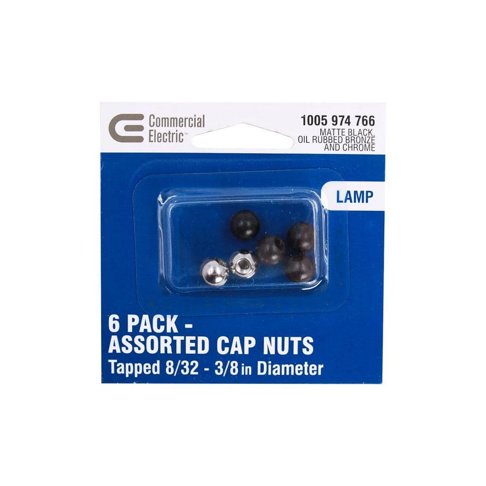 Put the finishing touch on securing exposed bolts or screw endings with these 3/8 in. Cap Nuts. The tapped 1-8 cap nuts have a 3/8 in. Dia., making them ideal for most common repair and building projects. Made of copper for added strength and durability, these cap nuts are strong enough to hold many lighting fixtures. Available in matte black, oil-rubbed bronze and chrome finishes (includes 2 of each finish color).
