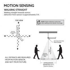 The Commercial Electric 35 in. Solar Motion Utility LED Shop Light comes fully assembled and provides added brightness to any workshop, outdoor patio or garage. Solar-powered for easy wireless installation. Comes equipped with a 20 ft. cord between the solar panel and the light fixture, an ultra-light weight design is perfect for hanging or flush mount installations to suit your space. The LED utility light is wet or dry location rated so it has the versatility to be used indoors or outdoors. This Integrated LED light is equipped with a motion detector sensor that can operate at up to a 10 ft. mounting height. The fixture provides up to 6-hours of motion-activated 4000K Cool White light, after the motion is detected, the fixture will illuminate at 1500 Lumens for 2-minutes, then drop to 750 Lumens after 2-minutes if motion remains detected and then 350 Lumens after 4-minutes if motion continues to be detected. With no wiring needed, these lights install in minutes and the integrated LED means maintenance free operation for years, ideal for remote areas or places without power, such as sheds, garages or covered patios. It runs entirely on solar energy that is stored in rechargeable batteries with the light activated by motion. Choose this luminous general-purpose solar task lighting fixture for residential or commercial applications.