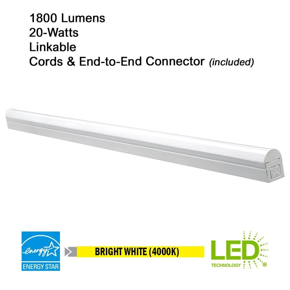Commercial Electric 4ft. LED Strip Light is designed to replace an outdated single fluorescent light into an energy-efficient integrated LED light fixture. With your choice between hardwire or plug-in power connection; this fixture is a versatile light for home, office or business. For a larger footprint, it is linkable up to 300-Watt maximum wattage with 2ft. or 4ft. strip lights. It provides crystal-clear illumination with no yellowing or discoloration or dark spots over time. This strip light has a superior long lasting driver for maintenance free service with no bulbs to replace. Great for under cabinets, pantry, desk hutch, kitchen desk, closet, work bench, tool bench or storage room.