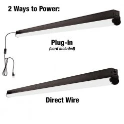Commercial Electric 4ft. LED Strip Light with direct wire or plug-in connection is designed to replace an outdated fluorescent bulb into a highly energy saving LED light fixture. With your choice between two power sources: direct wire or plug-in; this fixture is a versatile light for home, office or business. For a larger footprint, it is linkable up to 300-Watt maximum wattage with 2ft. or 4ft. strip lights. Packaging includes 14in. linking cord, end-to-end connector and 5ft. power cord. It provides crystal-clear illumination with no yellowing or discoloration or dark spots over time. This strip light is long lasting and maintenance free with no bulbs to replace. Ideal for under cabinets, pantry, desk hutch, kitchen desk, closet, work bench, tool bench or storage room.