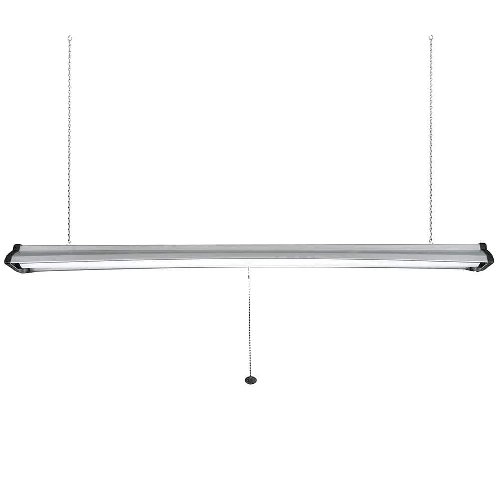 Commercial Electric 4 ft. High Output LED Linkable Strip Light with Pull Chain is designed to replace outdated fluorescent lights with a crystal-clear energy-efficient integrated LED fixture. For ease of installation, use the 5 ft. Power cord with 3-prong plug into wall or ceiling outlet and is linkable up to five 4 ft. units (hardware included). This shop light provides crisp and vibrant illumination with no yellow discoloration or dark spots over time. With its superior long-lasting light engine, our shop light is maintenance free with no bulbs required. Great for garage, basement, workshop, storage room, utility room or craft room.