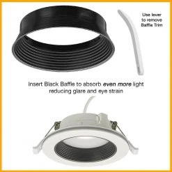 - Choose clack or white baffles – black for even more reduced glare and white for a seamless appearance with the ceiling