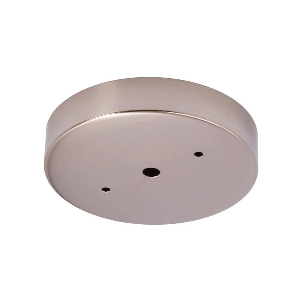 The 5 in. Brushed Nickel Finish Modern Canopy Kit for Ceiling Light Fixtures lets you suspend a light fixture anywhere in the home. Featuring a sleek and modern design, this simple Brushed Nickel finish canopy adds a blends in seamless with your existing decor while covering up an unsightly ceiling box. All pieces in the kit are mutually compatible, so you won’t have to worry about having a specific component on hand. Once you have installed the canopy, mount the lighting fixture following the manufacturer’s instructions. The kit contains a full collection of hardware for installation including: a crossbar, a screw collar loop, a locknut, mounting screws, a lock washer and cap nuts. The canopy is 5-1/8 in. Dia and has a 7/16 in. center hole. This kit is rated to support fixtures up to 50 lbs.