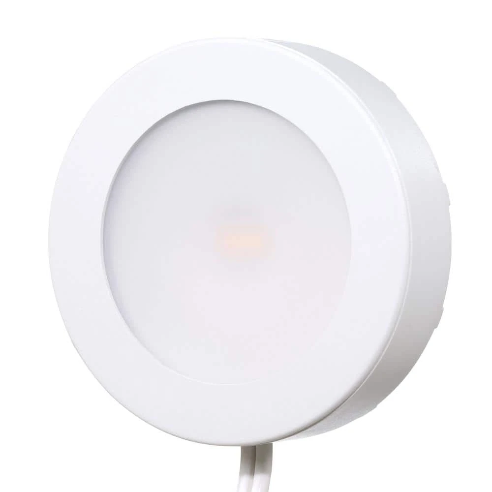 LED light provides even light distribution, warm white light and a cool operating temperature. These white AC puck lights (5-pack) feature LED modules built inside without a transformer easy for installation. They are dimmable with a separately sold dimmer.