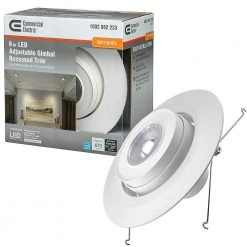 Commercial Electric’s 6 in. LED Gimbal Recessed Trim Light improves the quality of light the room due to being recessed into the ceiling. In addition, our Gimbal light provided you the ability to adjust the light to your specific needs with just the twist of the wrist. You can direct the light in the direction you prefer, as well as the width of the light from narrow to wide. Emits 670 Lumens of brightness using only 8-Watt of electricity. Illuminates 3000K Soft White color temperature of light output and is dimmable. Ideal applications are showcasing artwork, photographs, fireplace mantel, sports memorabilia, kitchen desks, reading area and general home lighting.