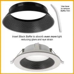 - Choose black or white baffles – black for even more reduced glare and white for a seamless appearance with the ceiling