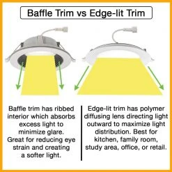 - Deep baffle trims absorb light to reduce glare and eye strain