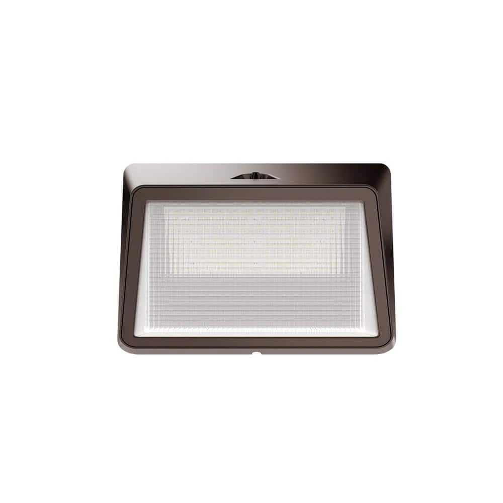 This energy-efficient wall pack is uniquely designed to cover a large outdoor area using precision forward-throw optics to focus 10000 Lumens of 4000K bright white light toward the ground and prevent it from escaping toward the sky. Installation is hands-free and a leveling bubble inside the box ensures a straight mount. Let the dusk to dawn photocell technology automatically turn the light on at sunset and off at sunrise. The aluminum housing resists corrosion for more than 50,000 hours of maintenance-free use. The 80-watt LED uses 85% less energy than standard bulbs, saving $50 annually on utility bills long beyond Commercial Electric’s 5-year warranty.
