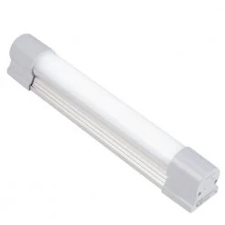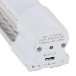 Perfect for work or recreational uses, this rechargeable 8.5 in. LED Portable Task Light is bright and versatile. The durably constructed aluminum body will last a long time. It produces 360 Lumens of LED light and is powered by a 4000mAh Li-ion battery, rechargeable by common DC5-V1A charger. Providing outstanding illumination, it also features 3-dimmable brightness levels along with Strobe and SOS functions. For convenience, there are strong built-in magnets on both ends and supplied stickers that make it easy to attach to a number of surfaces. It is ideal for use outdoors for emergency lighting, car repairs, camping, boating or at a cookout. It is also suitable for doors in the workshop, garage, basement, kitchen or around the house and backyard.