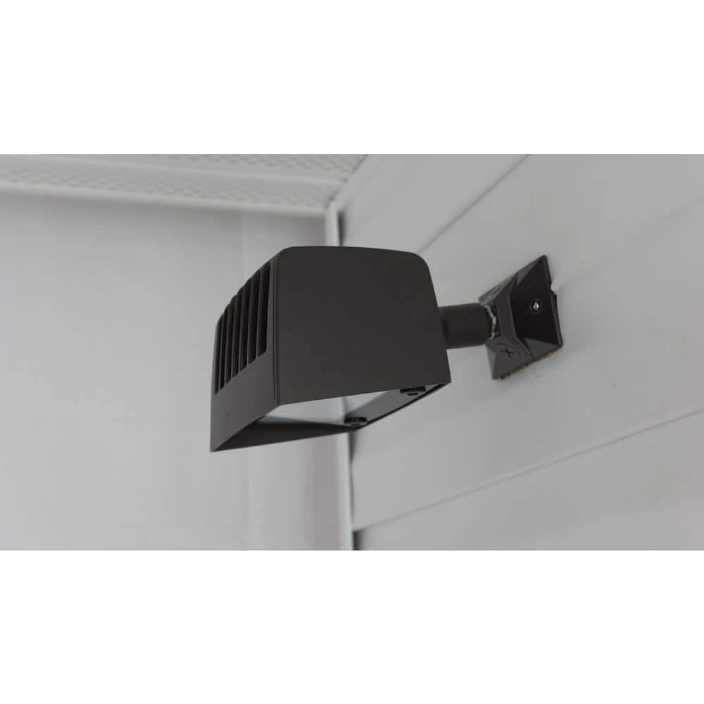 Powerful yet, not overbearing, this LED flood light secures a driveway, backyard, warehouse, apartment complex, signage or other large spaces with 2000 Lumens of bright white light, while consuming only 20-Watt of energy. The clear glass lens and precision optics maximize light coverage over a wide area. Use the swivel mount to install the fixture 8 ft. to 15 ft. high on a wall, eave or on the ground. The aluminum housing is coated with a bronze industrial-grade powder finish to resist corrosion for more than 50,000 hours of maintenance-free use. Its energy-efficient LED uses 85% less energy than a standard bulb, saving you on utility bills long beyond Commercial Electric 5-year warranty.