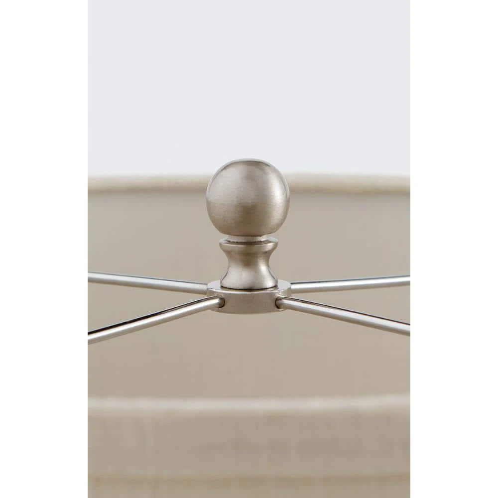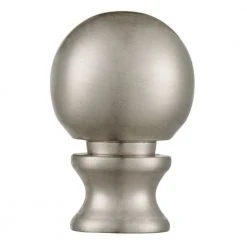 This Brushed Nickel Finish Ball Lamp Finial adds a charming accent to a lamp. This finial features a traditional knob shape. In addition to its decorative character, the finial also secures a lampshade firmly onto a standard table or floor lamp. To install, unplug your lamp and remove the old finial by turning counterclockwise. Then, place the lampshade over the lamp harp’s threaded stud and fasten the finial by turning clockwise. This finial is 1-1/2 in. high.