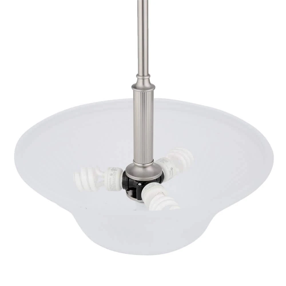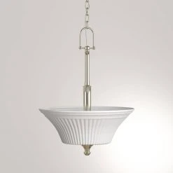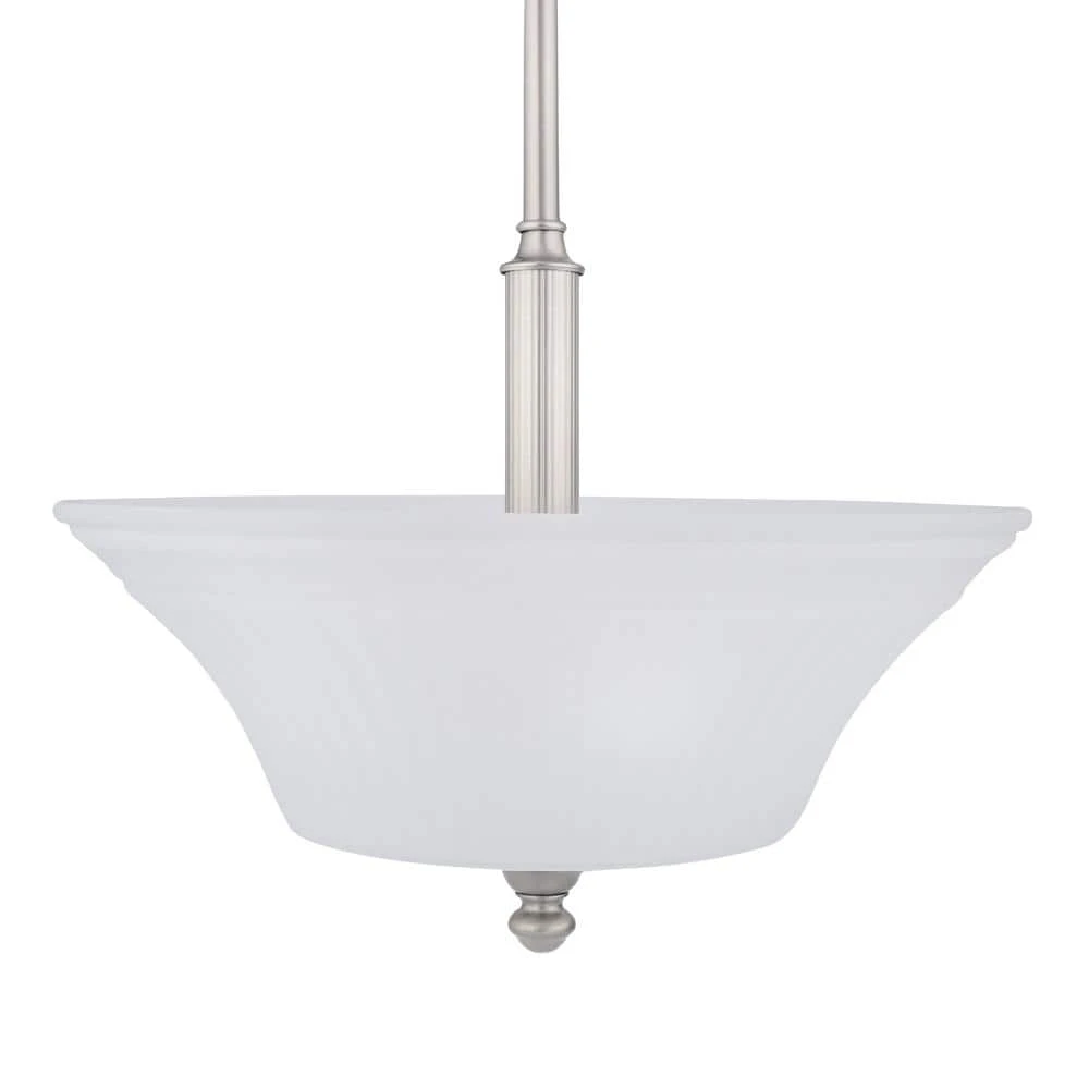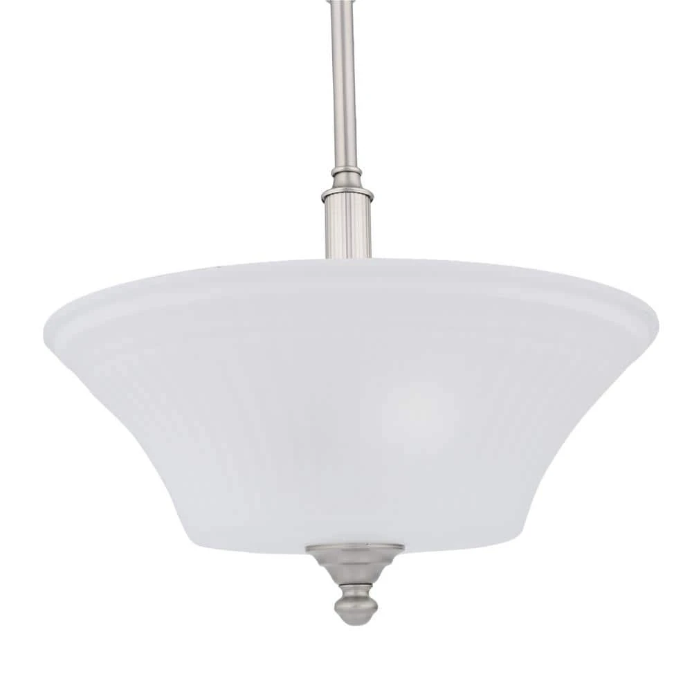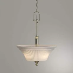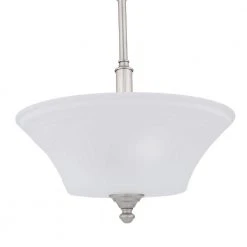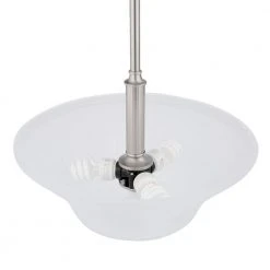 The 3-light pendant is beautifully crafted in a restoration look of yester year. Finished in brushed nickel, it will be a great additional to any room. It has a frosted glass shade to provide pure illumination. This unique pendant is the choice of discriminating yet value conscious homeowners who want to enrich their home.