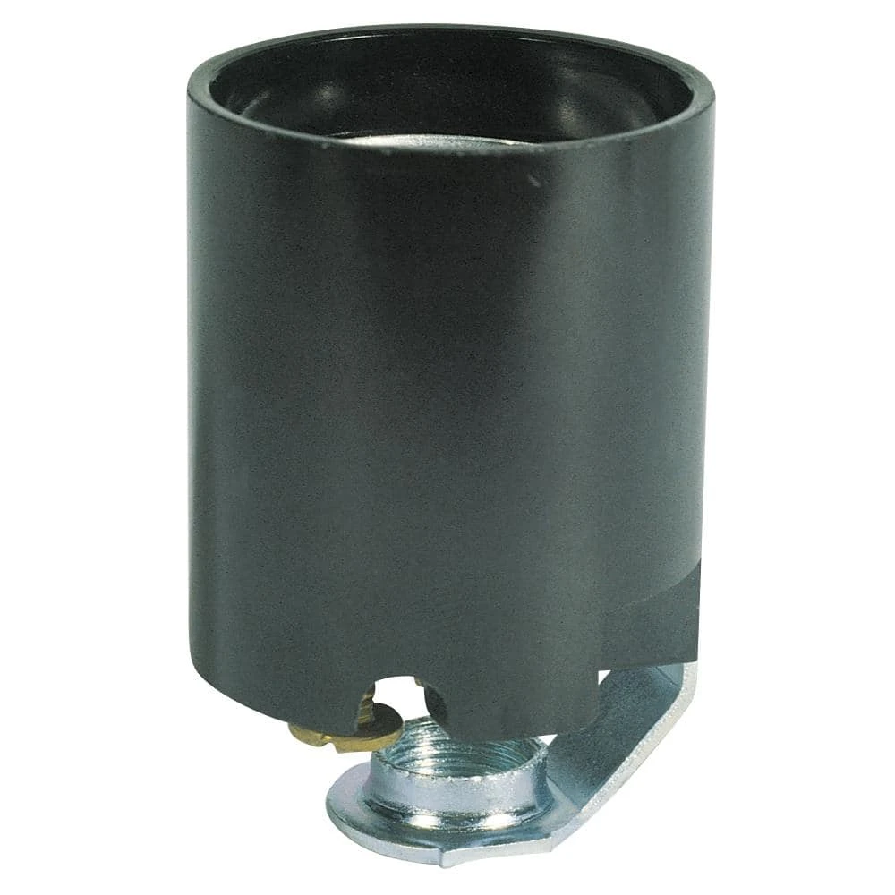 Replace a socket or safely build a new light fixture with the versatile 2 in. Black Keyless Phenolic Lamp Socket. The keyless design is perfect for wall switch-operated lighting and its phenolic construction makes it durable and heat resistant. This 2 in. high socket features a 1/8-IP hickey and is threaded for standard, medium-base light bulbs. This socket also has a bracket screw terminal, is rated for 660-Watt, 250-Volt capacity for long-term indoor use, and is UL/CUL Listed for safety.