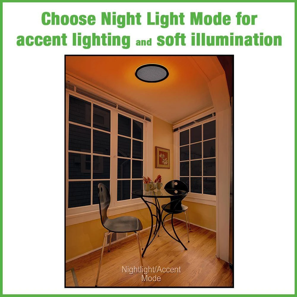 - NIGHT LIGHT MODE: Provides reduced light output at 2000K soft Amber color temperature of light output for very soft illumination