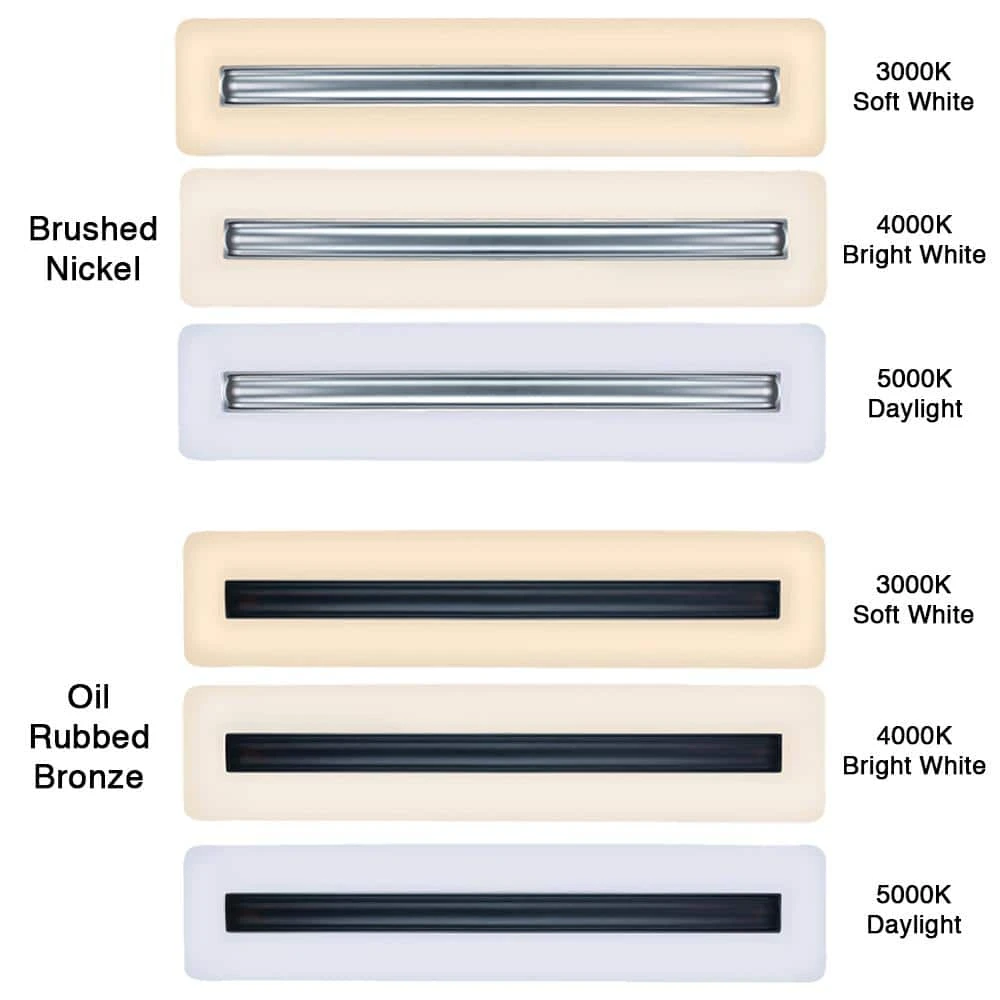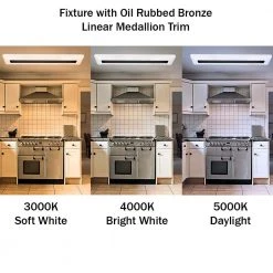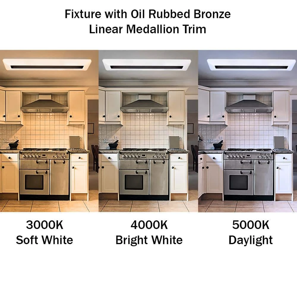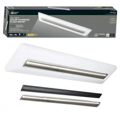Commercial Electric’s Low Profile 4 ft. x 10 in. LED Flush Mount with Night Light Feature and 2 Decorative Linear Medallions is an innovative and Contemporary fixture designed for home or office. Choose between 2 decorative linear medallions in Brushed Nickel or Oil Rubbed Bronze to cover the center depending on your decor. Prior to installation, you choose between (3) color temperatures of light: Soft White, Bright White, Daylight. Our unique patented Night Light feature is for low ambient lighting when you do not want full illumination. Perfect to leave on for the evening, child’s room, hallway, stairway or basement. Activate it by toggling your wall switch On/Off/On. This flush mount emits 4000 Lumens of brightness using only 50-Watt of power. It is lightweight, easy to install and long-lasting to ensure maintenance free with no need to replace any bulbs. Ideal for kitchen, laundry room, bathroom, bedroom, hallway, stairway, basement, office, corridors, retail spaces and so much more.