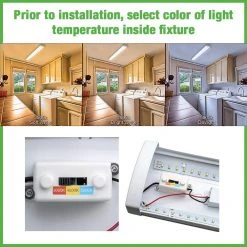 Commercial Electric’s Low Profile 40 in. LED Strip-Light is designed to replace outdated T8 T12 fluorescent-Light with a powerful energy-efficient integrated LED fixture. Prior to installation, adjust color of-Light between Soft White, Bright White or Daylight by using the slide switch on back of the fixture. This fixture has crystal clear illumination with no yellow discoloration, easy to install and maintenance free with no bulbs to replace. Ideal applications: laundry room, closet, walk-in pantry, garage, basement, craft room, storage or utility room, work shop or office.