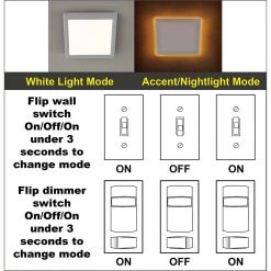 - NIGHT LIGHT MODE: Integrated 2000K Soft Amber color glows around fixture; perfect for warm ambient lighting – Activate by wall switch – toggle ON/OFF/ON