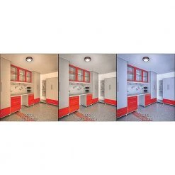 Commercial Electric’s 9 in. Integrated LED Spin Light Flush Mount Ceiling light is designed to simply screw into most existing plastic and porcelain lamp holders without any wiring required. Converts your lamp holder to a fixture in no time at all. With our selectable color switch, you can preset your preferred White light color temperature: Soft White, Bright White or Daylight. Don’t let the name Heavy Duty fool you; this fixture is super lightweight for easy installation. Emits 1100 Lumens of brightness using only 15.5-Watts of power; saving energy, the environment and your wallet. Ideal for closets, stairways, laundry room, basement, garage, attic, tool shop or storage area.