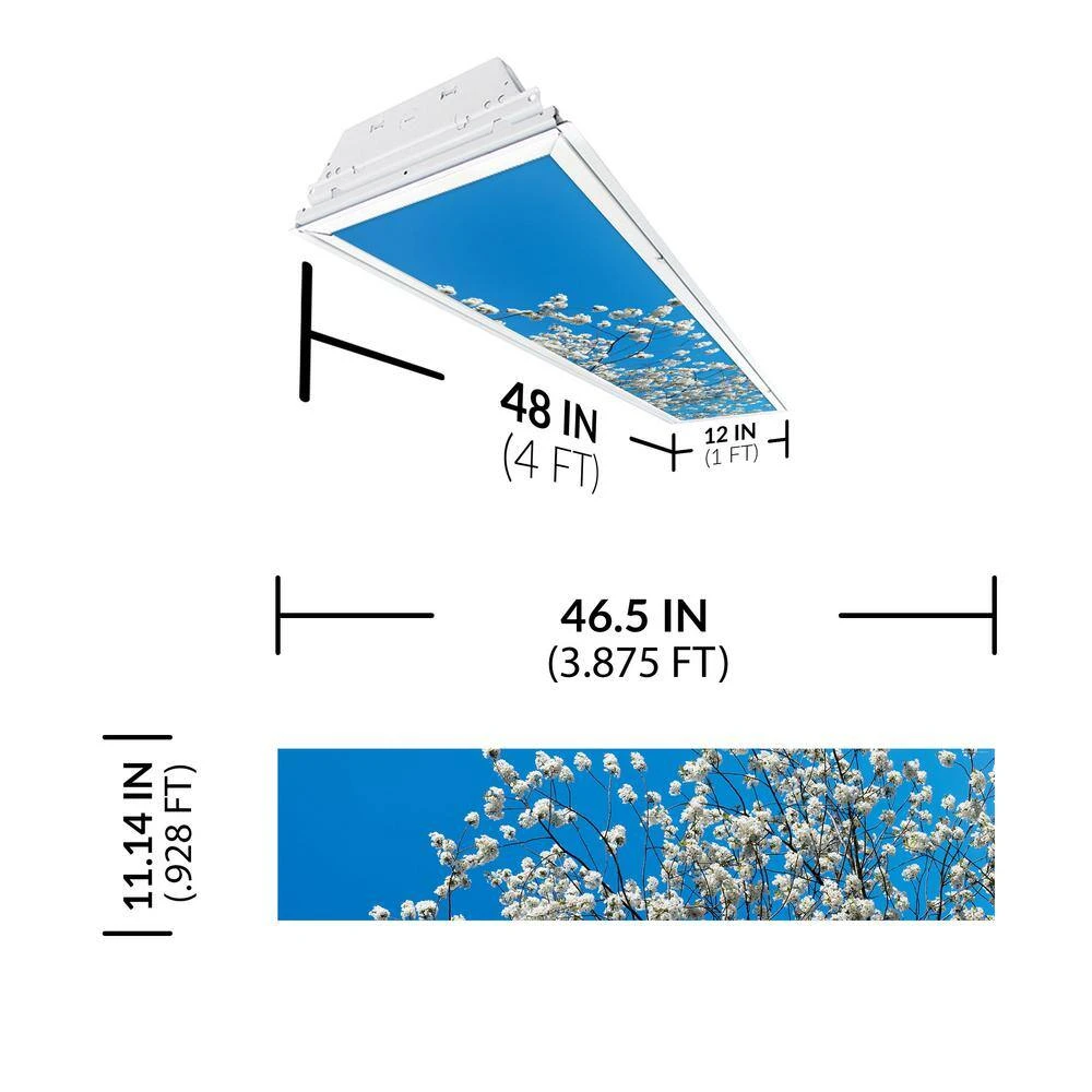 • 【UNIVERSAL 1×4 FIT】 Octo Lights’ decorative tree light covers seamlessly fit any standard 1×4 fluorescent ceiling light. The actual size of each panel measures, 11.187″ x 46.5″