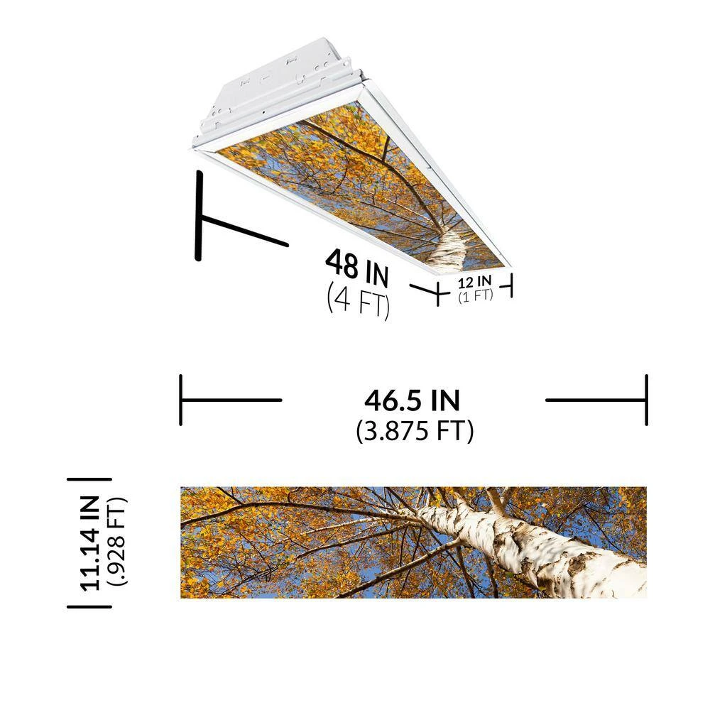 - 【UNIVERSAL 1×4 FIT】 Octo Lights’ decorative tree light covers seamlessly fit any standard 1×4 fluorescent ceiling light. The actual size of each panel measures, 11.187″ x 46.5″