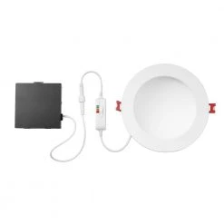 The Color Temperature Select Recessed Lighting Kits are the recessed lights of the future. Not only is each fixture is designed specifically for small spaces where height clearance is limited such as beams or ductwork, you can change the color temperature with a flick of a button. The integrated color changing switch is located on the cable so you can choose between a 2700, 3000, 3500, 4000 or 5000 Kelvin temperature to best suit your needs. 2700 or 3000 Kelvin is perfect for relaxing, 3500 or 4000 Kelvin is the ideal choice for everyday affairs and 5000 Kelvin is great for task lighting in a basement, hallway or work area. Energy Star certified and IC rated for direct contact with insulation, these lights won’t overheat, do not require a bulky can and will last for years to come – 50 000-hours or approximately 34 years if used for 4-hours per day to be exact. Wet rated and certified airtight, this 6 in. kit is perfect for your bathroom, drop ceilings, outdoor soffits, larger spaces and all general lighting applications.