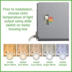 - COLOR TEMPERATURE OTPIONS: 2700K Warm White, 3000K Soft White, 3500K Cool White, 4000K Bright White and 5000K Daylight