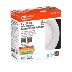 Commercial Electric Ultra Slim 6 in. Canless LED Recessed Downlight with Night Light feature and multiple light output options is one of the most innovative and simplest ways to upgrade your existing recessed lights to energy-efficient LEDs. This innovative fixture offers 3 unique features than any light on the market. First, the canless, ultra slim design is the wave of the future, no need for cans or joist, easily installs into low clearance or sloped ceilings. Second, prior to installation, choose between (5) color temperatures of light output for your space, Warm White, Soft White, Cool White, Bright White or Daylight and you can change your mind anytime. And third, the Night Light feature glows a soft Amber hue around the trim ideal for end of evening activities, hallways, baby’s room or movie night. Suggested applications such as kitchen, family room, living room, entry way, hallway, bathroom/shower, bedroom, basement, office, retail shops, theatres, lobby/reception areas and so much more.