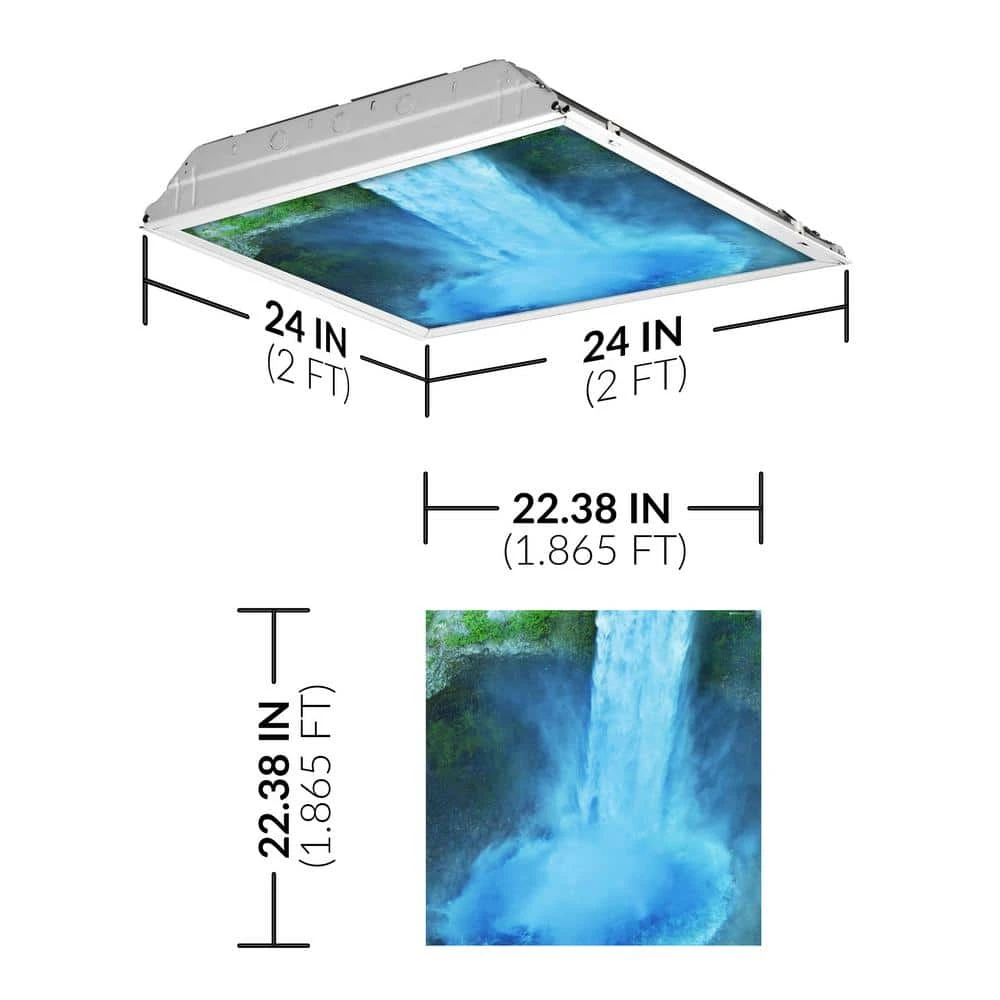 - ?UNIVERSAL 2×2 FIT? Octo Lights’ decorative waterfall light covers seamlessly fit any standard 2×2 fluorescent ceiling light. The actual size of each panel measures, 22.38″ x 22.38″